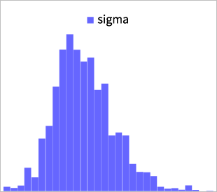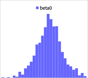 ただし、\(N\)(∙,∙)は正規分布、\(IG\)(∙,∙)は逆ガンマ分布、 \(Beta\)(∙,∙)はベータ分布とします。以下の(図表3) は、MCMCによってサンプリングを行った事後分布です。(他パラメータは割愛)補足ですが、サンプリング手法はメトロポリス法(メトロポリス・ヘイスティングス法)をベースにして、提案分布は適応的多変量正規分布と呼ばれるものを仮定しています。