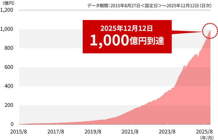 長期的な資産形成における分散投資の効果に期待する多くの投資家の皆さまからご支持を賜った結果、2025年11月末時点で、4資産に分散投資するインデックスファンドとしては国内最大の残高※となっています。多くの投資家の皆様からの多⼤なるご⽀援・ご愛顧に感謝申し上げます。
