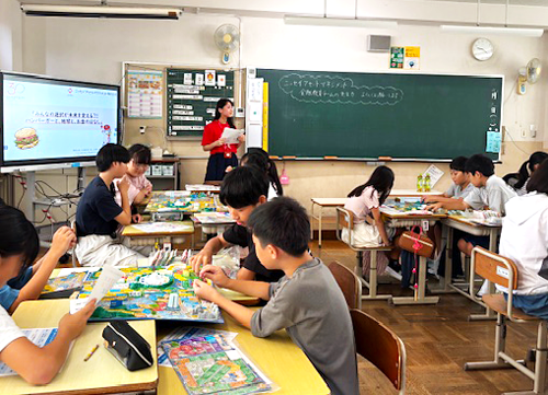 当社が制作支援を行った「Beyond SDGs 人生ゲーム」を活用した出張授業を行っており、2025年度は「社会課題および投資について学ぶ授業パート」と「Beyond SDGs 人生ゲーム体験パート」の2部構成で実施しました。